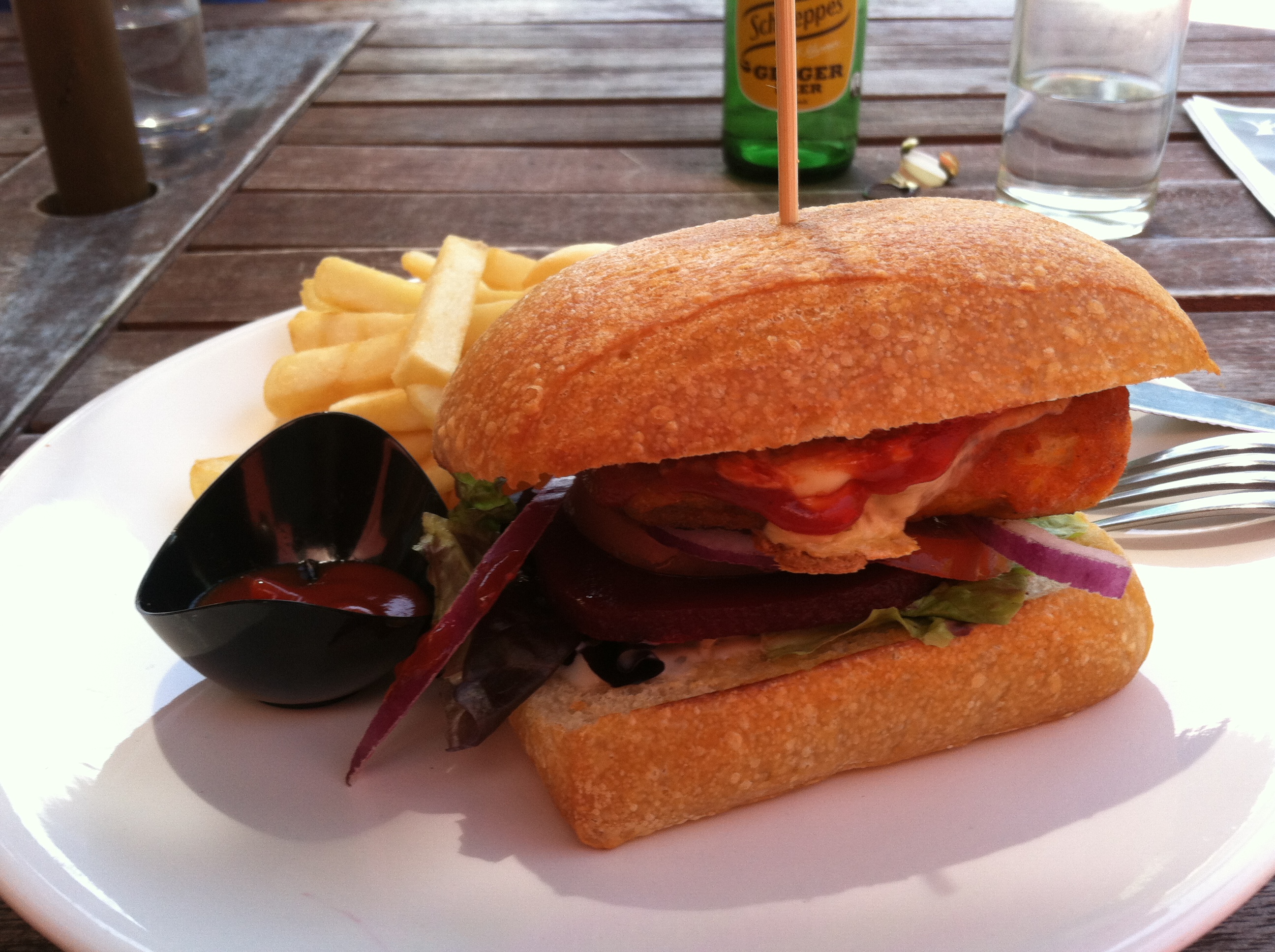 One of the first things I learned about cuisine in New Zealand is that they like to top their burgers with big slices of beetroot. This was a very good surprise to a girl that has loved beets since before she can remember. Another variation includes a fried egg and some bacon. Yum! Enjoyed this lovely meal at TOI, a cafe adjacent to a climbing gym by the name of “Vertical Assault.” Semi-awkward gym name, if there ever was one.